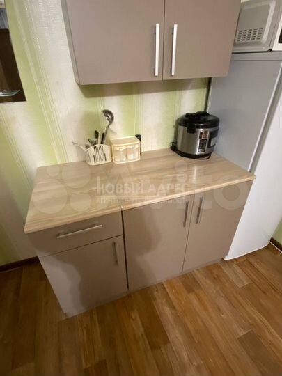 В комнате выделена жилая зона и зона кухни. Дом кирпичный 1984 года постройки