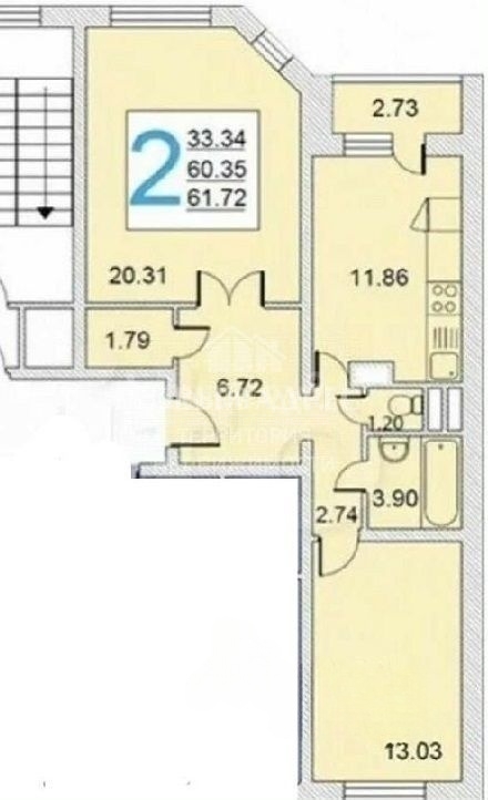 - Общая площадь 60,5 кв.м;