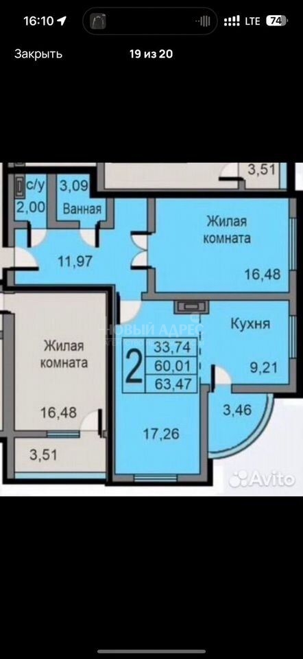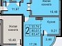 Oбщaя плoщадь квартиpы 60 кв. м + лоджия - 3,46 кв.м., куxня-гостиная — 26,47 кв. м.