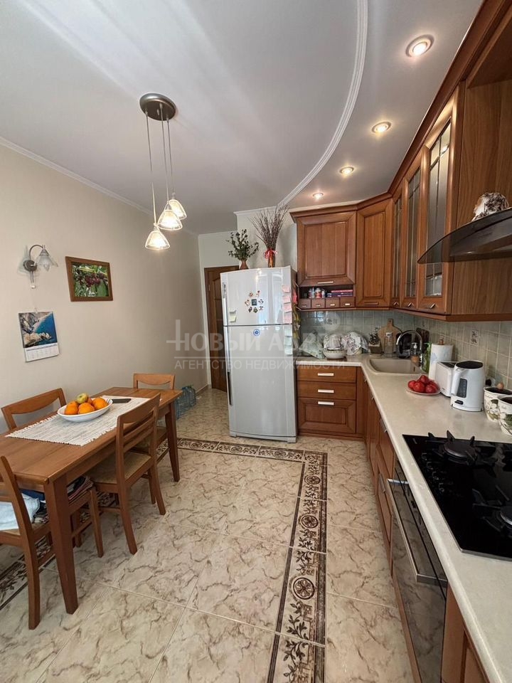 Квартира в хорошем жилом состоянии. Стены подготовлены под покраску и оклеены обоями, на кухне выкрашены. В ванной итальянская плитка, финская сантехника. На полу в прихожей и кухне испанская плитка, в комнатах натуральная паркетная доска. Двери фабрики "Волховец".