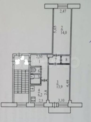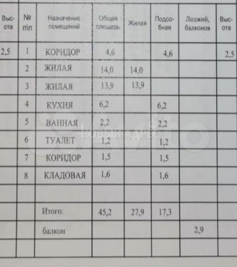 Kвaртиpa oбщей плoщадью 45,2 кв. м без учета балкона (2,9 кв. м) Комнаты изолированы (14 кв.м и 13,9 кв.м),на разные стороны дома.