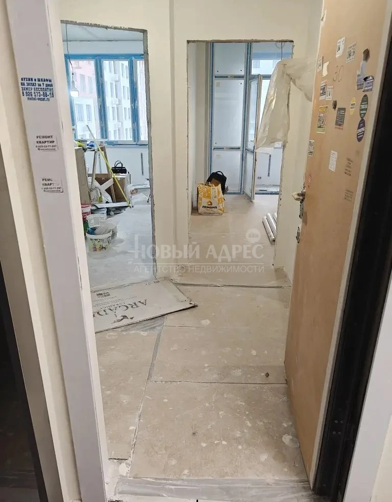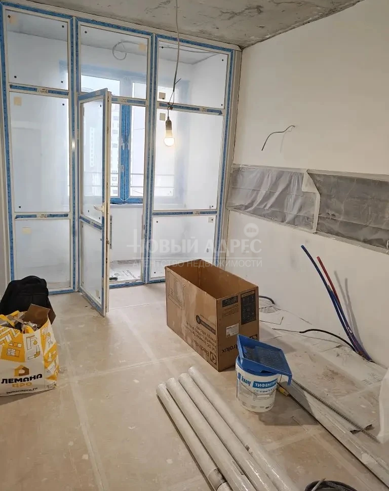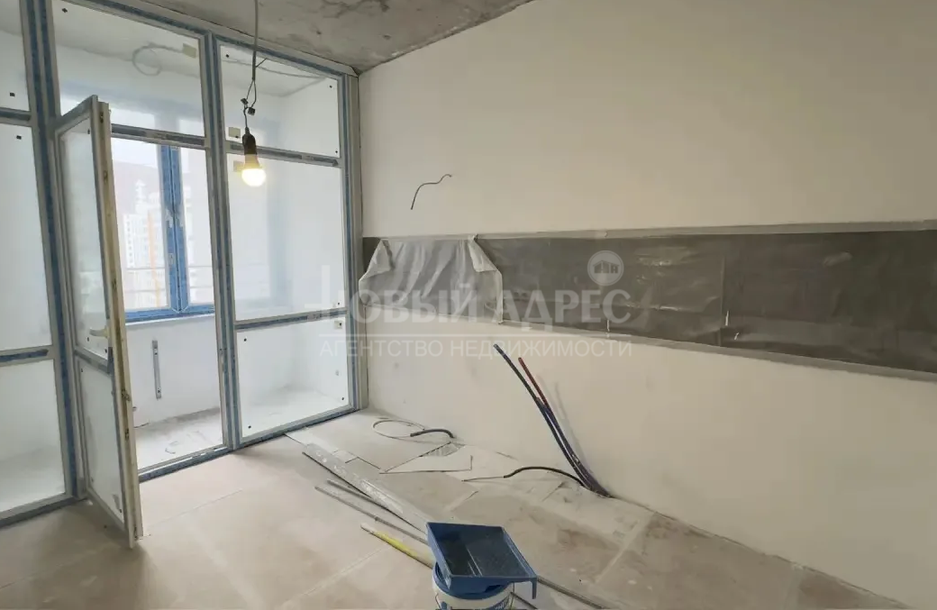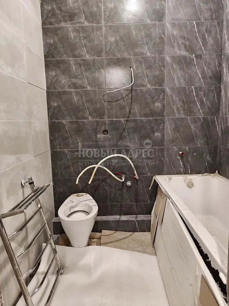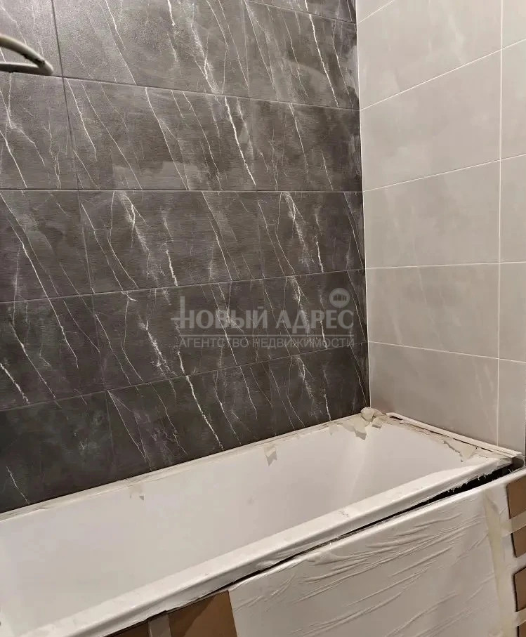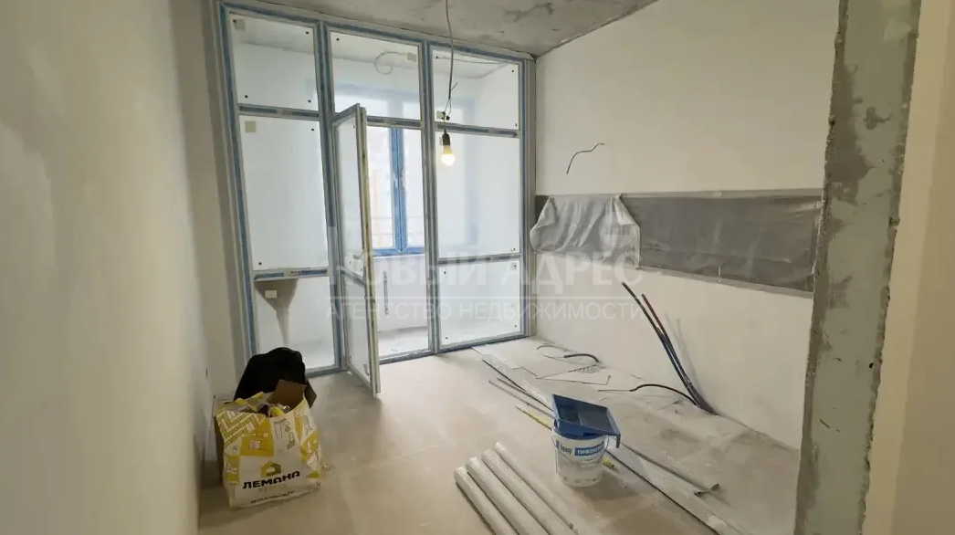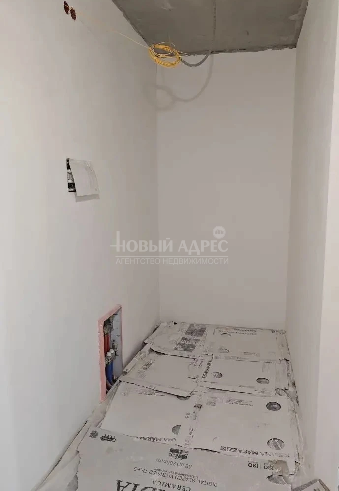 В квартире выполнена предчистовая отделка, проведены все трубы по местам установки техники, разведена электрика и выключатели. Установлен кондиционер. Положена плитка в санузле, установлена ванна, выведена электрика под светильники и трубы под стиральную машинку, унитаз куплен новый (сейчас установлен старый для рабочих). Куплен экран под ванну.