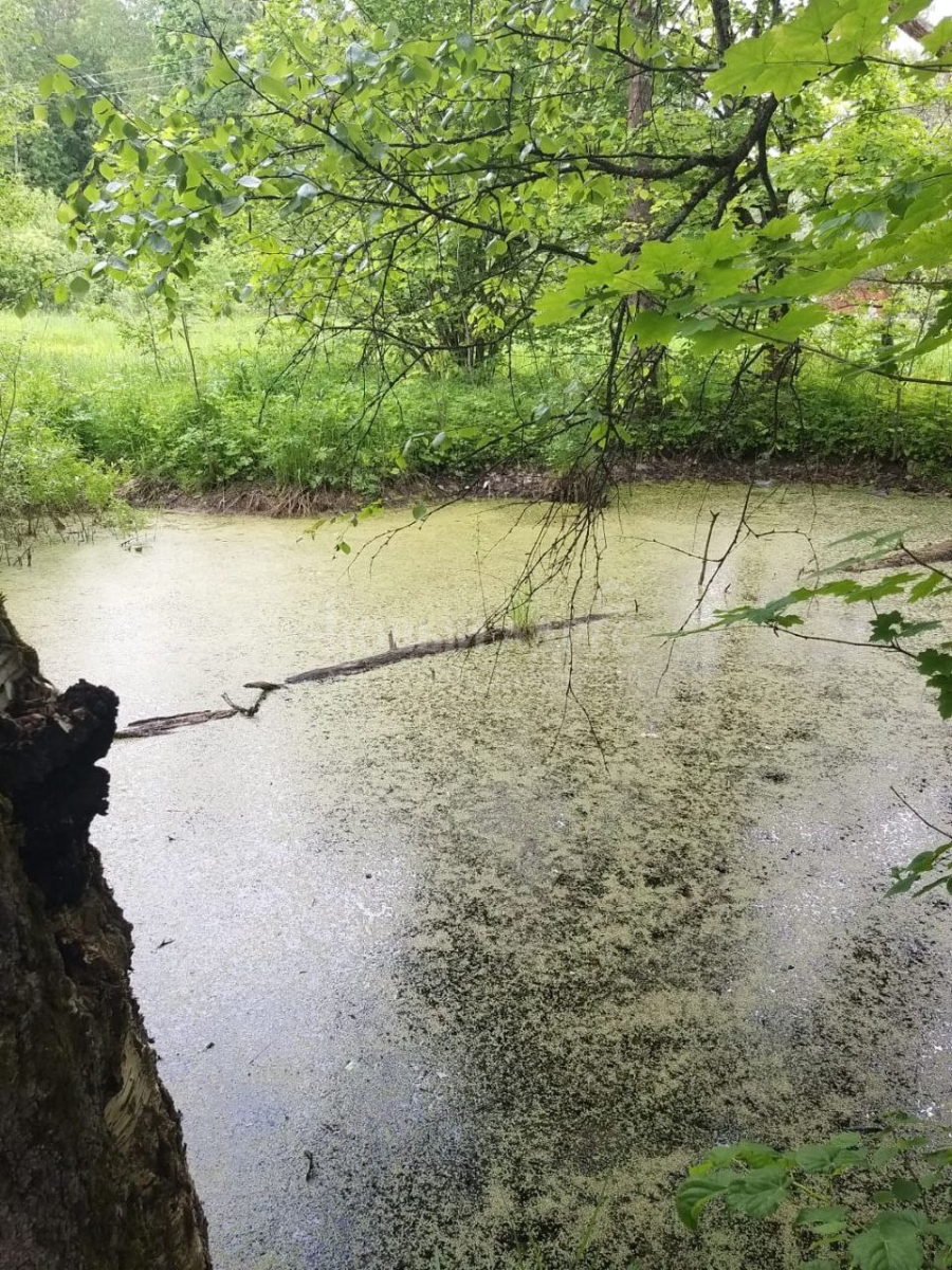 На участке стоит нежилой дом , газ, электричество по границе. На участке также есть пруд.
